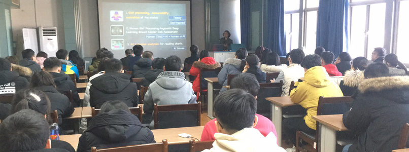 客座教授聘任证书。报告中,陈博士介绍了其团队在可视化和人工智能领域取得的最新研究成果,其中包括基于视觉科学设计可视化方面、视觉可视化在实现人类智能和机器智能结合方面以及机器智能在读可视化图形时的行为和偏见等方面的最新发现。陈博士语言生动有趣,深入浅出、内容丰富,让广大师生收益匪浅。