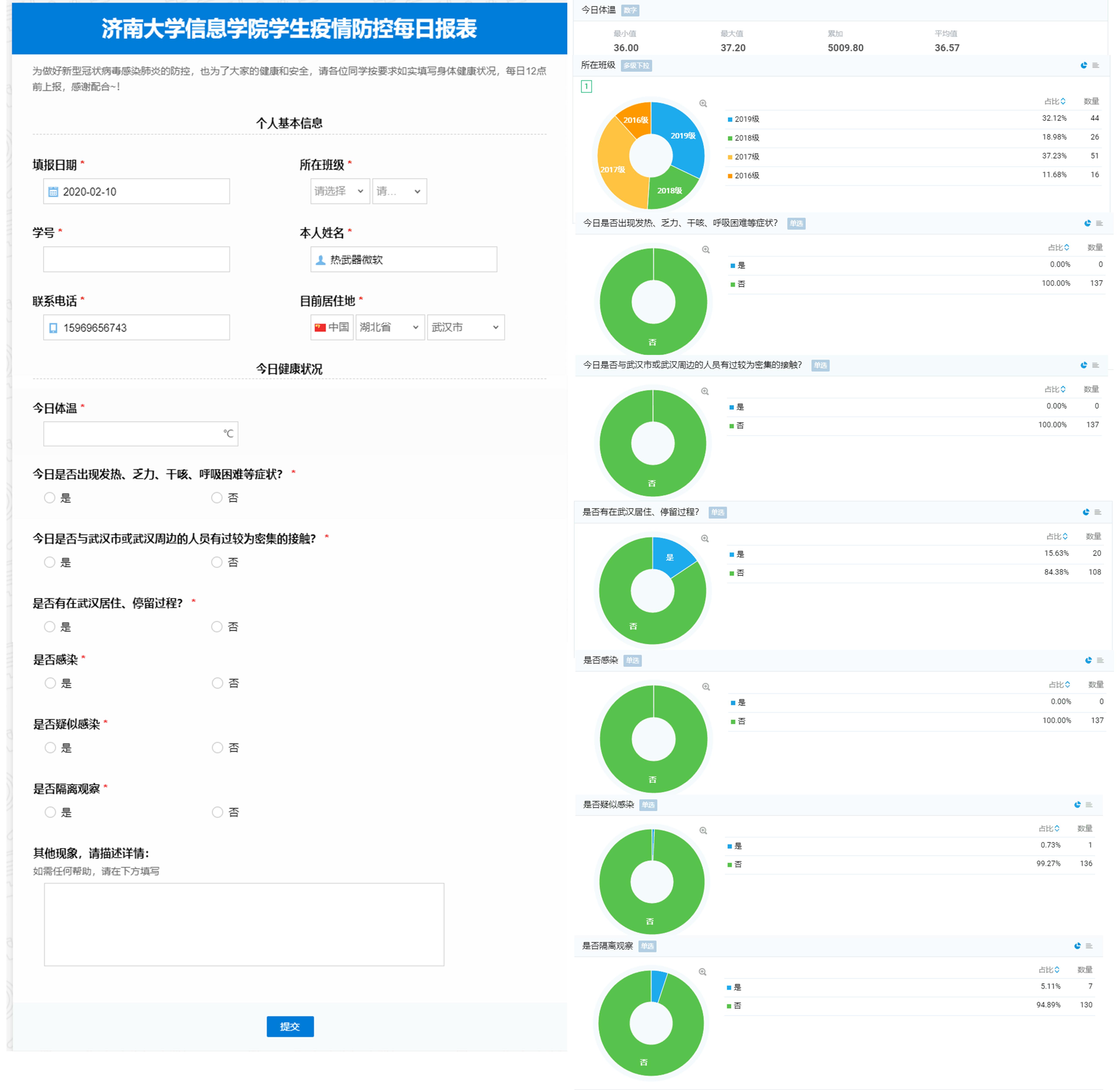 学生疫情防控每日报表”系统,通过系统可快速、全面的掌握学生每日动态信息,更有针对性的做好疫情防控工作。
