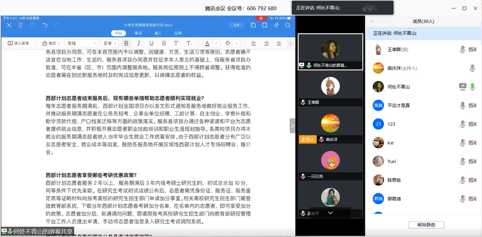 座谈会后,与会人员围绕报录比、薪资待遇、工作内容、服务周期等方面进行提问,古丽巴尔申·叶尔肯逐一进行详细解答。通过此次线上交流会,同学们对“大学生志愿服务西部计划”有了更加深入的了解,对“到西部去,到基层去,到祖国和人民最需要的地方去”有了更加深刻的理解和认识,也更加坚定了他们去西部的信念。