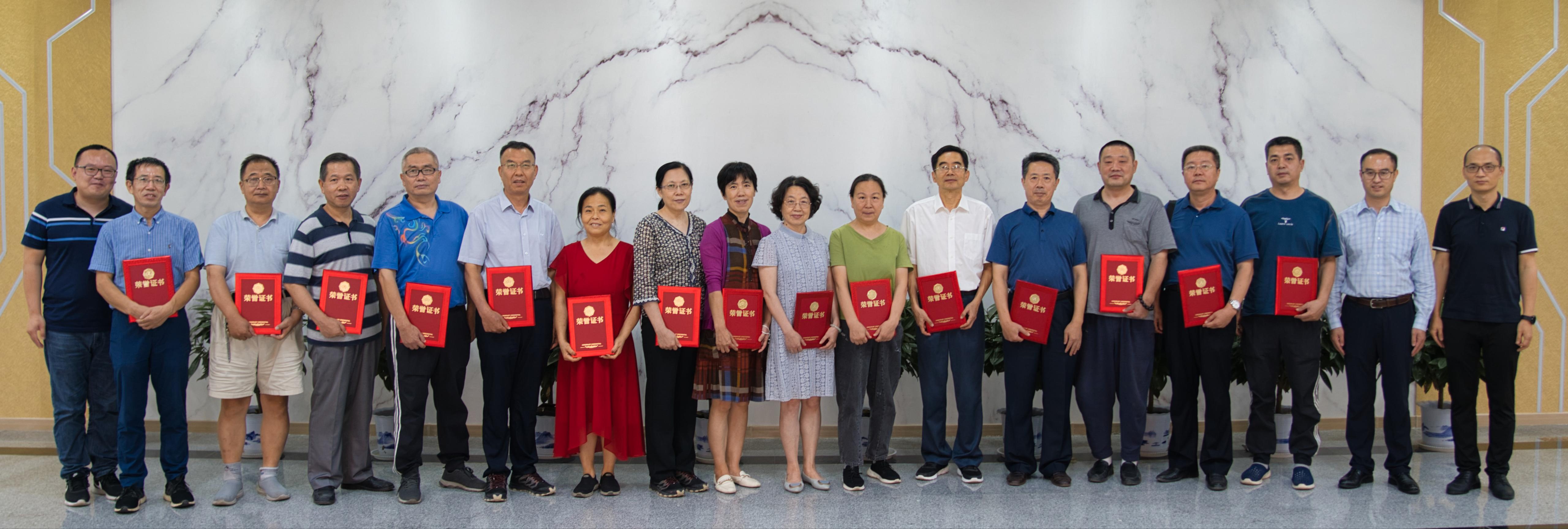 党政领导班子为到场的15位教师颁发“从教三十年”证书和纪念奖杯,并同大家合影留念。