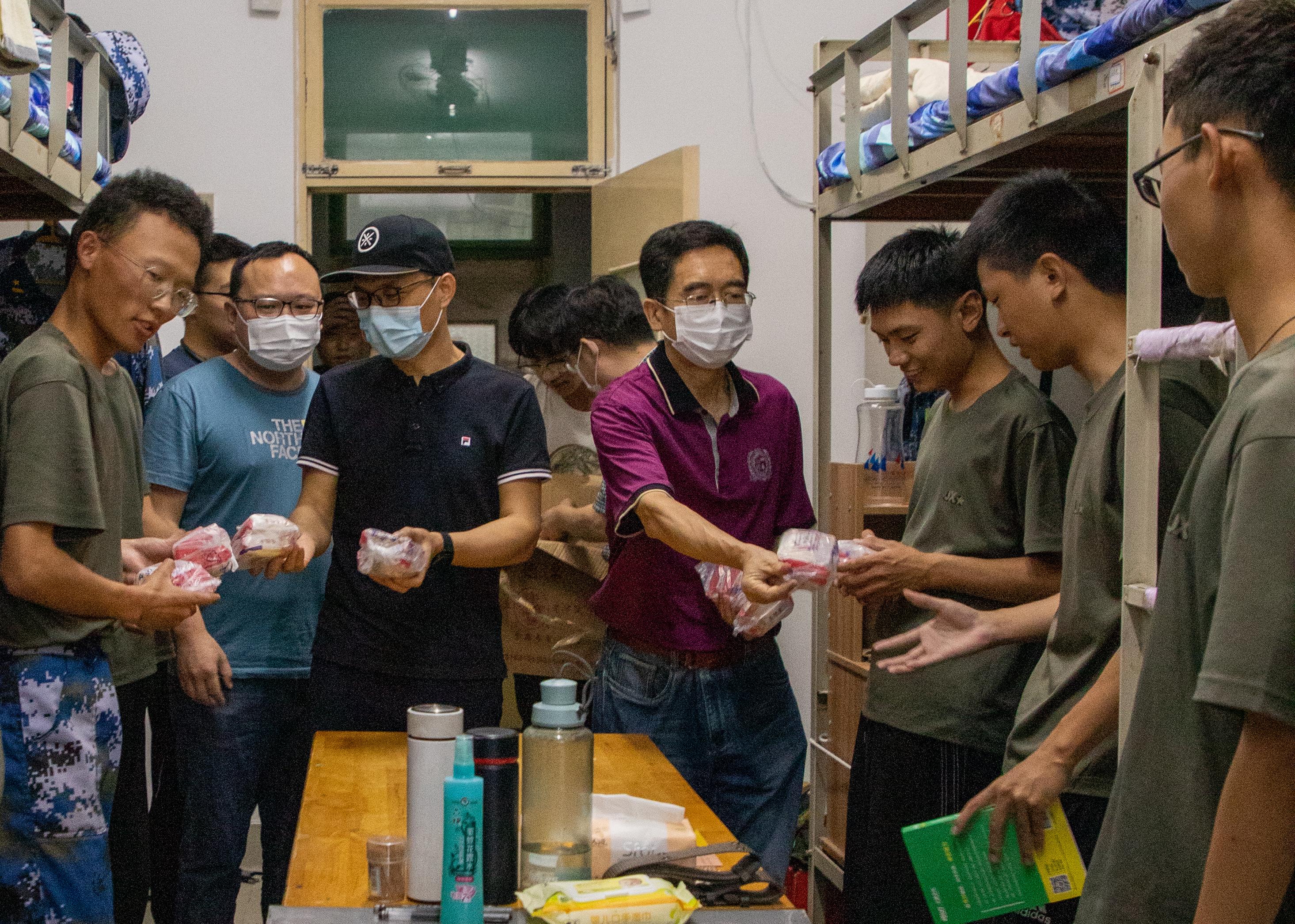 党委书记邱鲁军,党委副书记、副院长刘颖超,副院长荆山,副院长韩士元以及学生工作办公室全体老师深入学生宿舍,为2021级新生送上中秋月饼和节日问候。
