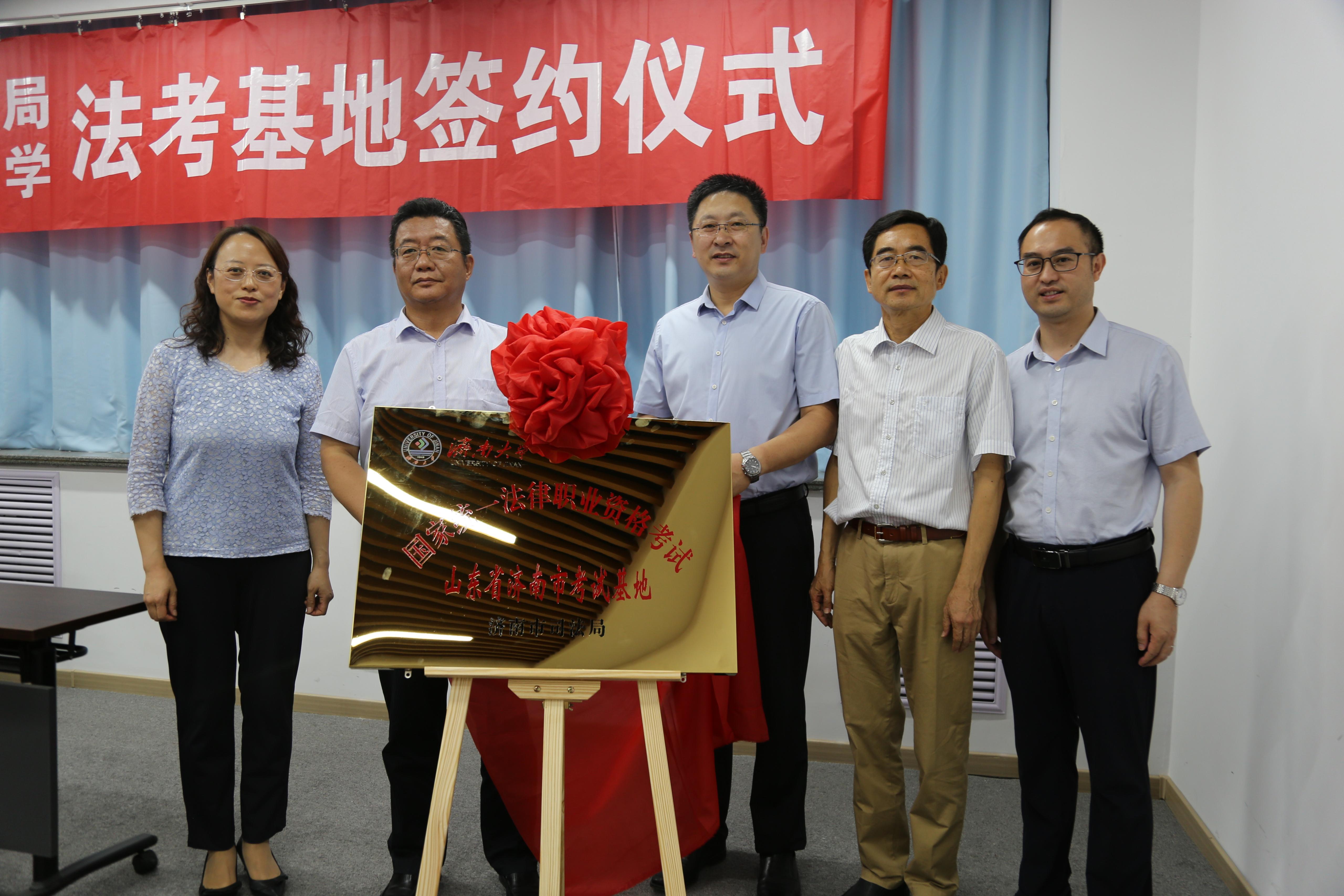 合作发展处处长卢旺同志为“济南法考基地”进行了揭牌。