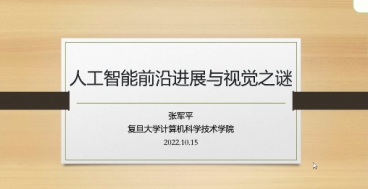 张军平教授首先带来了题为“人工智能前沿进展与视觉之谜”的精彩报告。针对发展迅猛的深度学习模型是否全部解决了人工智能中的视觉问题这一命题,报告介绍了人工智能在视觉方面的进展、存在的不足和一些目前暂无终结答案的谜题,并讨论了未来潜在的研究方向。