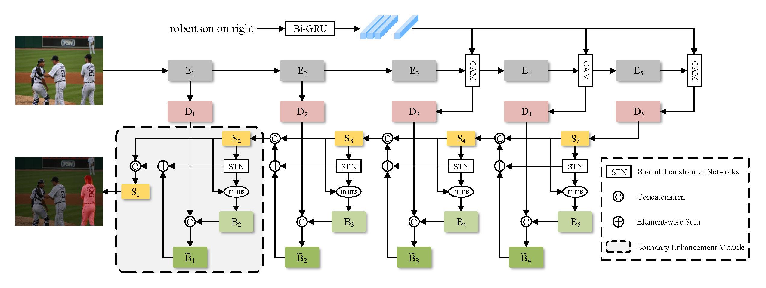 指称分割任务旨在根据语言表达的描述定向地分割图像(或视频)中相应的视觉区域。对于这个跨模态任务,现有的方法通常在网络的解码端考虑多模态特征之间的相互作用,但它们通常忽略了多尺度特征之间的相关性。论文首次提出了编码器融合策略,其利用协同注意力机制,将语言特征嵌入到视觉编码器中,将其转换成多模态特征编码器,并实现语言对不同尺度多模态特征的渐进式引导。其中协同注意力机制用于学习多模态特征的共同映射,使它们在新的特征子空间有更好的语义一致性,以最大程度发挥语言的引导作用。对于视频数据,该文章引入了非对称的跨帧注意力机制,其在保证合理计算量的同时,有效地从视频帧中捕获了时序信息。在应用方面,该文章所提出的模型在指称图像/视频分割国际标准数据集上取得领先结果,分割性能显著地优于已有模型。