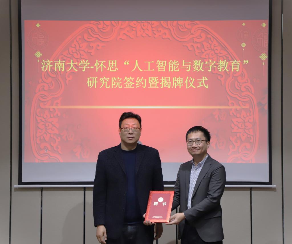 院长陈贞翔与山东怀思总经理杨阳签订了设立“人工智能与数字教育”研究院合作协议。根据双方协议,PG娱乐官网