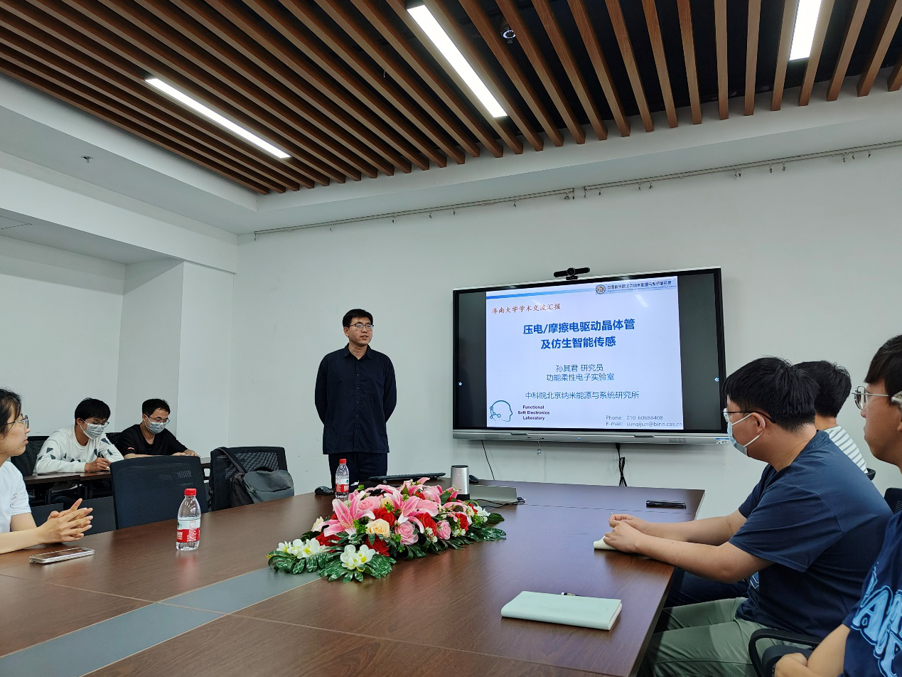 开展学术交流活动,并以“压电/摩擦电调控场效应晶体管和人工智能传感”为题做学术报告。PG娱乐官网