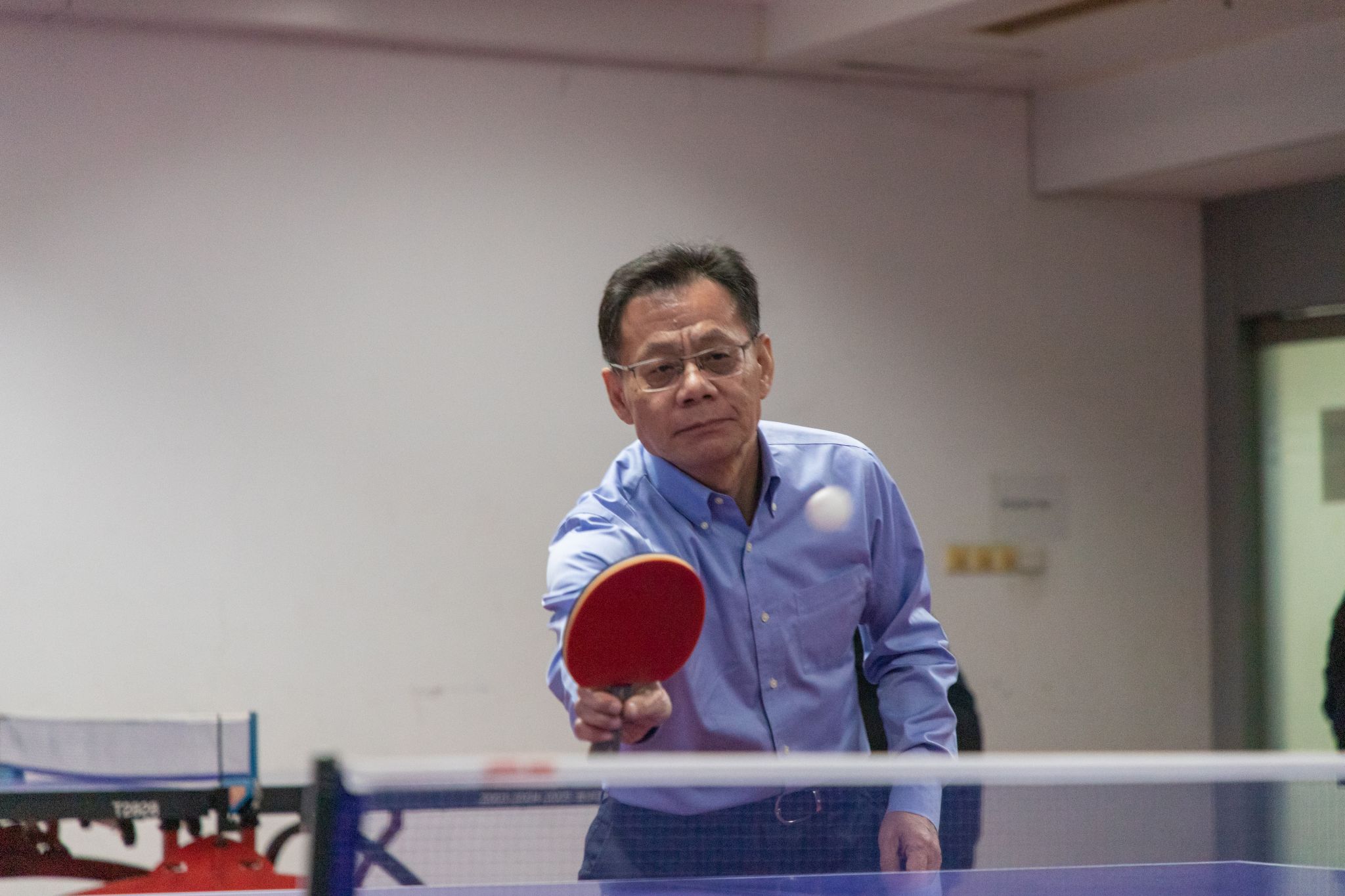 于代荣副教授一起为比赛开球,拉开了比赛序幕。比赛中,选手们身姿矫健,步履轻快,时而正手勾手发球,时而出其不意地反手侧旋出球,发球抢攻、搓球变线、反手推挡、正反手拉弧线等高难度动作层出不穷,每一次挥拍都牢牢牵动着在场观众的眼神,小小的球在台案上来回穿梭,划出一道道美丽的弧线。此次比赛中,参赛教师们精神饱满、积极进取、敢打敢拼,展现了PG娱乐官网