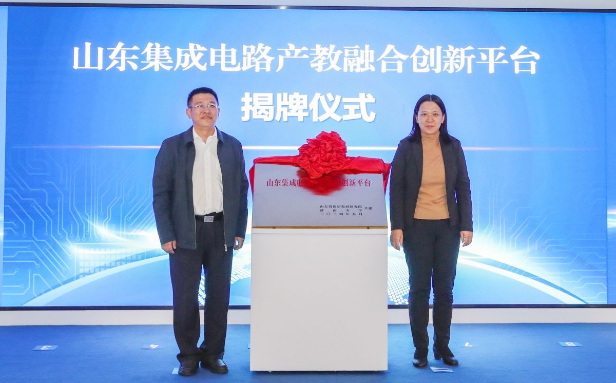 与山东省科技厅党组成员、山东省创新发展研究院党组书记、院长刘峰共同为山东集成电路产教融合创新平台揭牌。该平台汇聚了高校、企业和政府的优质资源,通过产教融合及政产研学用深度协作,提升高校人才培养质量和企业研发创新能力,服务国家和山东省集成电路人才发展战略。