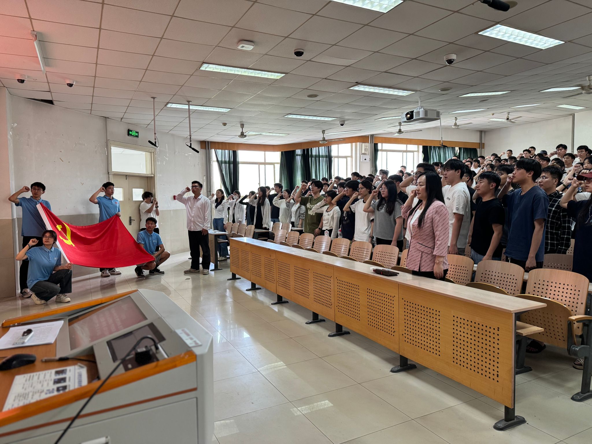 党课结束后,为激励毕业生党员坚守初心使命、恪守廉洁之风,PG娱乐官网 组织235名毕业生党员重温入党誓词。铿锵有力的宣誓声响彻会场,这一庄严仪式,既是对初心使命的再次叩问,更是踏上新征程的郑重承诺,彰显着新时代党员传承红色基因、永葆政治本色的坚定信念。