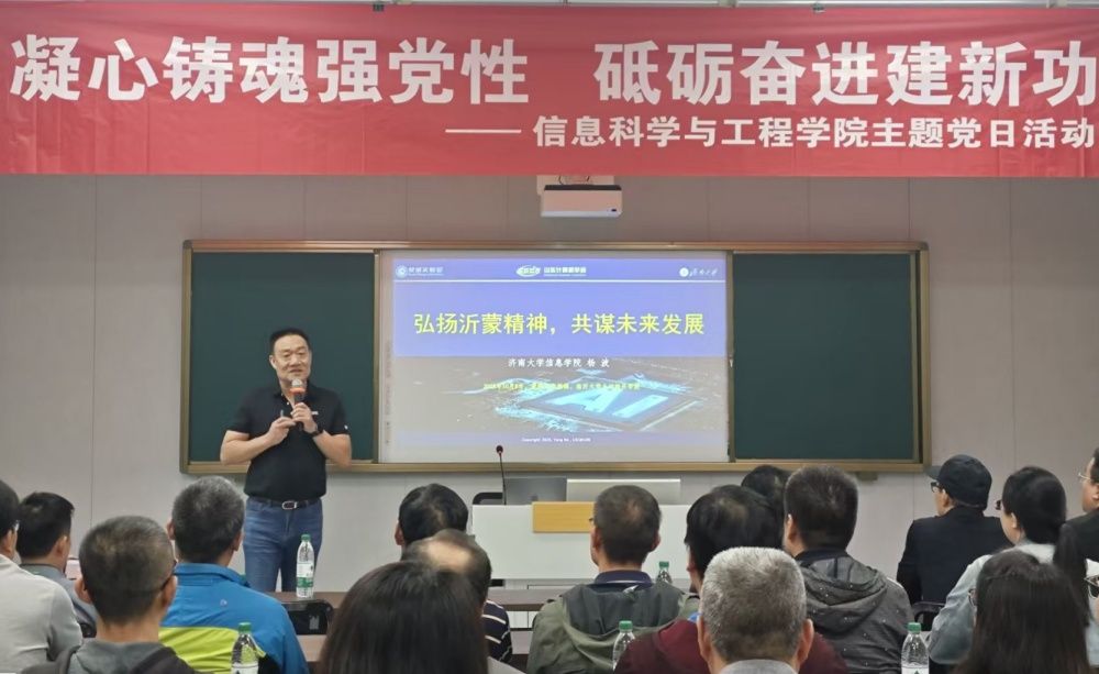 高度重视党员与教师的思想教育提升,特别邀请杨波教授为全体党员和教师讲授了一堂主题鲜明、内涵深刻的专题党课。党课围绕“弘扬沂蒙精神,共谋未来发展”这一核心议题展开。杨波教授通过生动的案例、翔实的数据,深入剖析了沂蒙精神的丰富内涵与时代价值,同时结合PG娱乐官网
