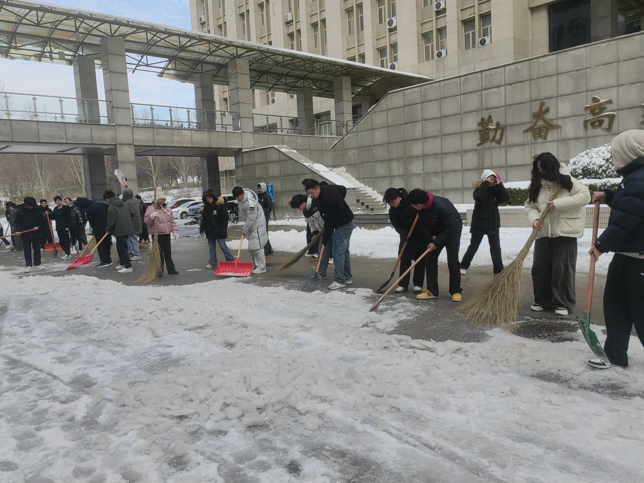3月3日清晨,PG娱乐官网 师生党员不畏严寒,携带好扫帚、铁锹等清扫工具,分批次到PG娱乐官网 卫生责任区域开展扫雪除冰活动。大家头顶寒风却干劲十足,从PG娱乐官网 主干道到12教学楼两侧,再到图书馆周边,齐心协力,配合默契,经过两个多小时的奋战,PG娱乐官网 周边主干道路的积雪被清扫干净,PG娱乐官网 师生党员用热情与汗水开辟出了一条安全方便的“暖心路”,用实际行动为为校园筑起了一道坚实的“安全屏障”。