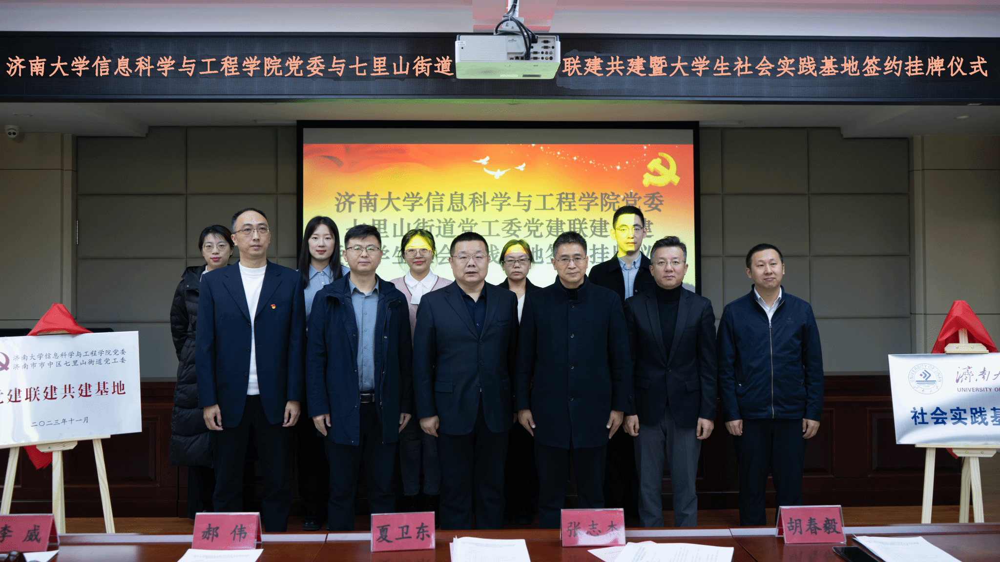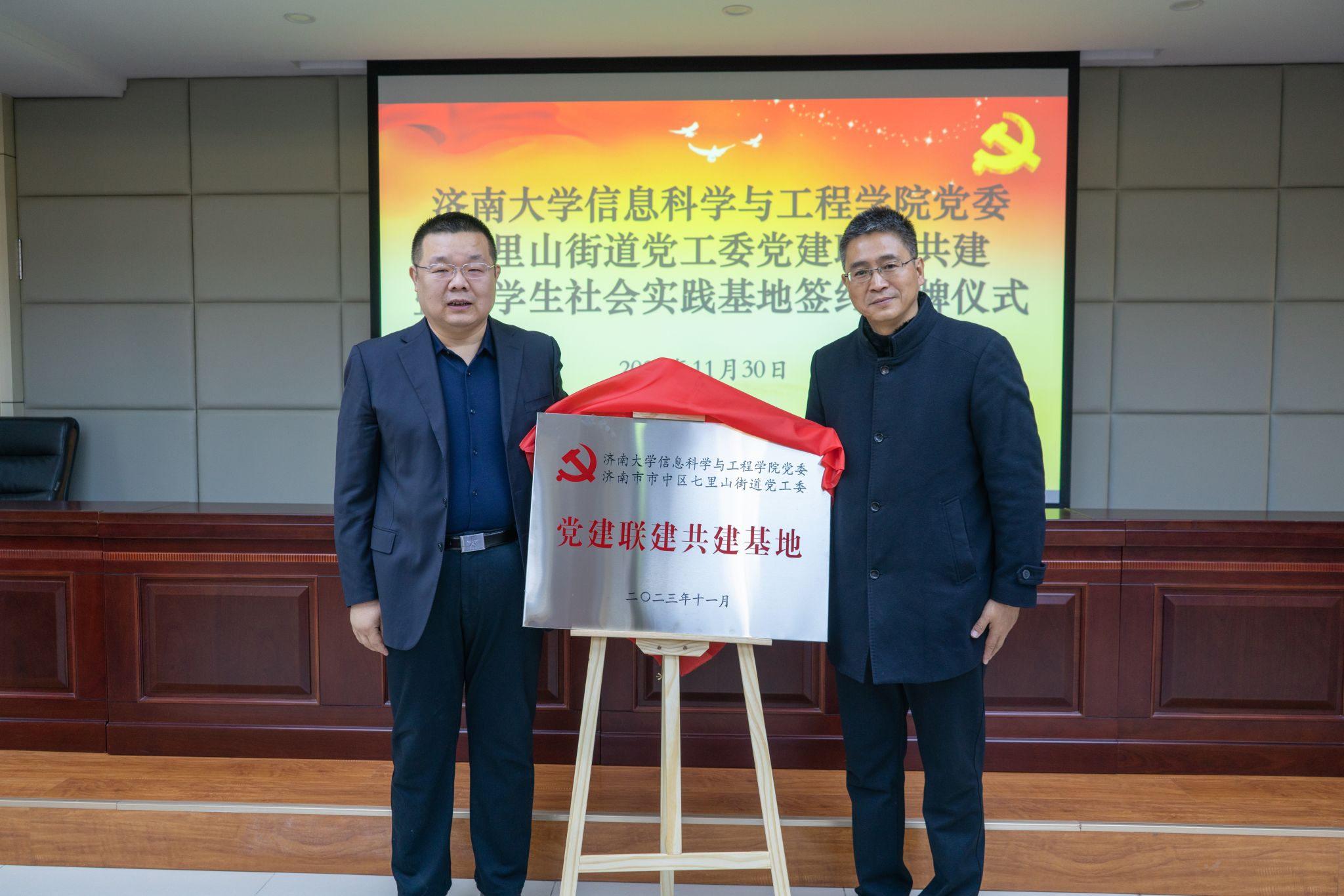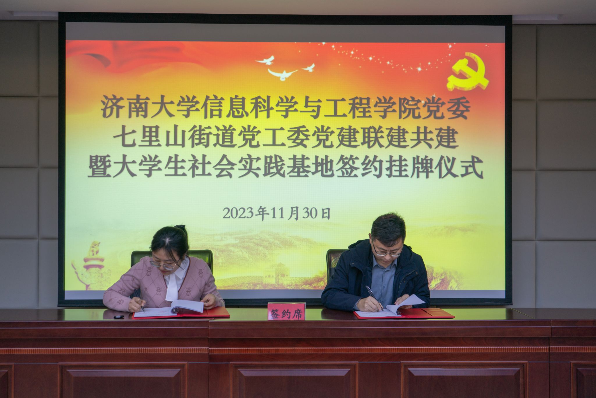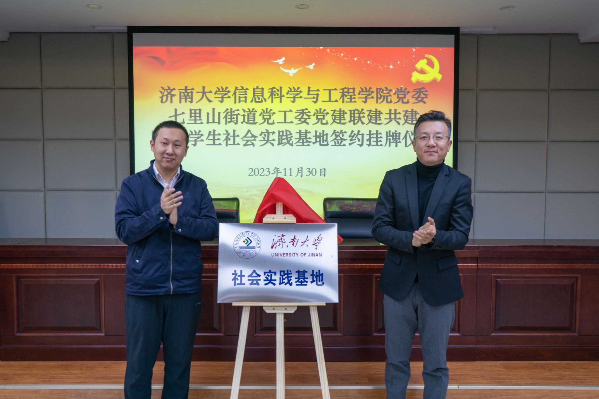 为了深入贯彻落实习近平新时代中国特色社会主义思想和党的二十大精神,积极响应团中央“百万大学生进社区”的号召,进一步推进校地融合、双向共建,搭建高校人才到基层实践锻炼平台,通过党建引领,共同探索基层治理新模式、新路径,11月30日上午,PG娱乐官网 与济南市市中区七里山街道党工委党建联建共建暨大学生社会实践基地签约挂牌仪式在七里山街道党群服务中心举行,共青团济南市市中区委书记党淼,济南市市中区七里山街道党工委书记张志杰,党工委副书记李威,党工委委员、办事处副主任隗娜,PG娱乐官网 团委书记胡春毅,PG娱乐官网 党委书记夏卫东,党委副书记、副院长郝伟,七里山街道相关负责人,PG娱乐官网 全体辅导员以及学生志愿者代表参加仪式。仪式由隗娜主持。