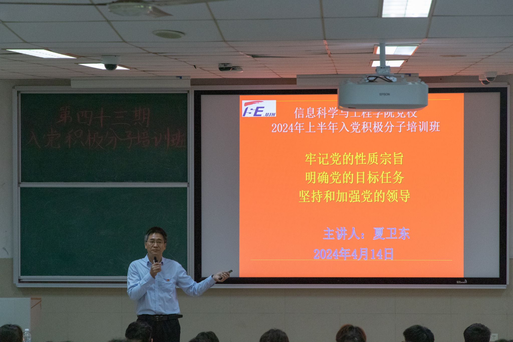 开班仪式结束后,夏卫东以《牢记党的性质宗旨、明确党的目标任务、坚持和加强党的领导》为题进行党课教学。强调作为一名入党积极分子,要牢记党的性质、宗旨,永葆党的先进性品格,增强“四个意识”,坚定“四个自信”,以饱满的热情、积极的态度投入到培训中,将学到的理论知识运用到学习和日常生活中去。