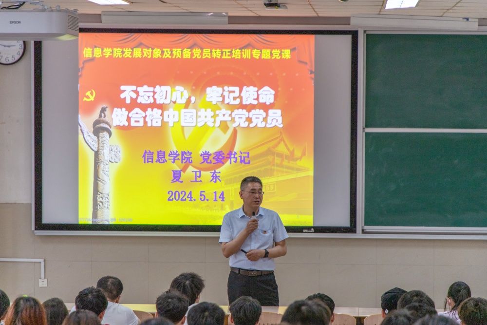 为做好学生党员的教育、管理和培养工作,推进党纪学习教育走深走实,进一步坚定党组织发展对象和预备党员的理想信念,提高党性修养,强化使命担当,增强纪律和规矩意识,5月14日,PG娱乐官网 开展本学期党组织发展对象和预备党员转正培训专题党课。PG娱乐官网 党委书记夏卫东、党委副书记郝伟分专题为大家讲授党课,本学期党组织发展对象和即将转正的预备党员近200人参加了培训。
