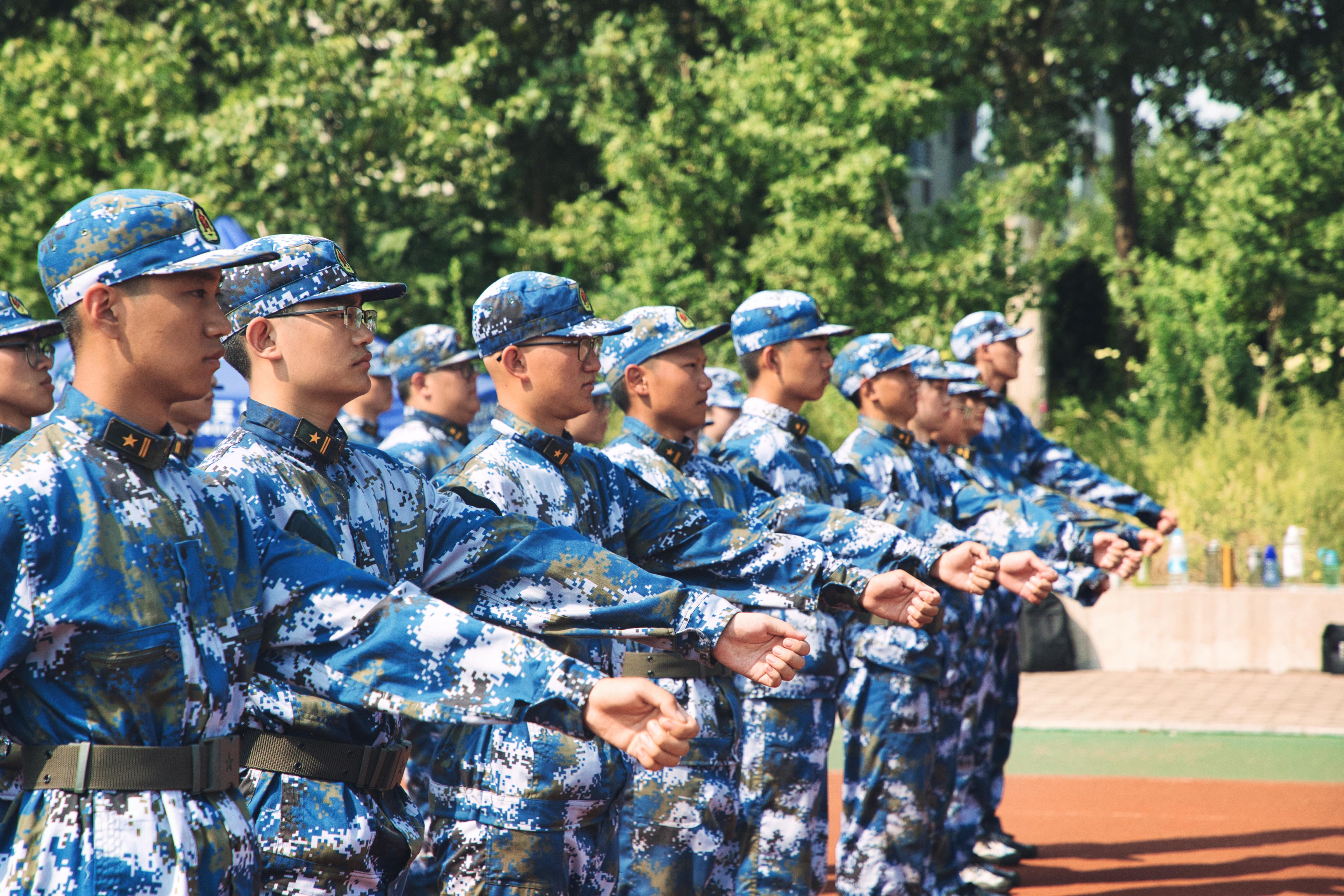 红绿相间的训练场上,整齐站立的新生在教官们的一声声口令下,逐渐进入训练模式。军训中,同学们勇敢克服烈日当空所带来的乏热,认真完成教官发出的每一个指令,一张张略显稚嫩的脸庞上却挂着无比坚毅的神情,充分展现了信院学子不怕困难,吃苦耐劳的精神风貌。经过几天的严格训练,立正、稍息、报数、整着装、摆臂等训练已初见成效。