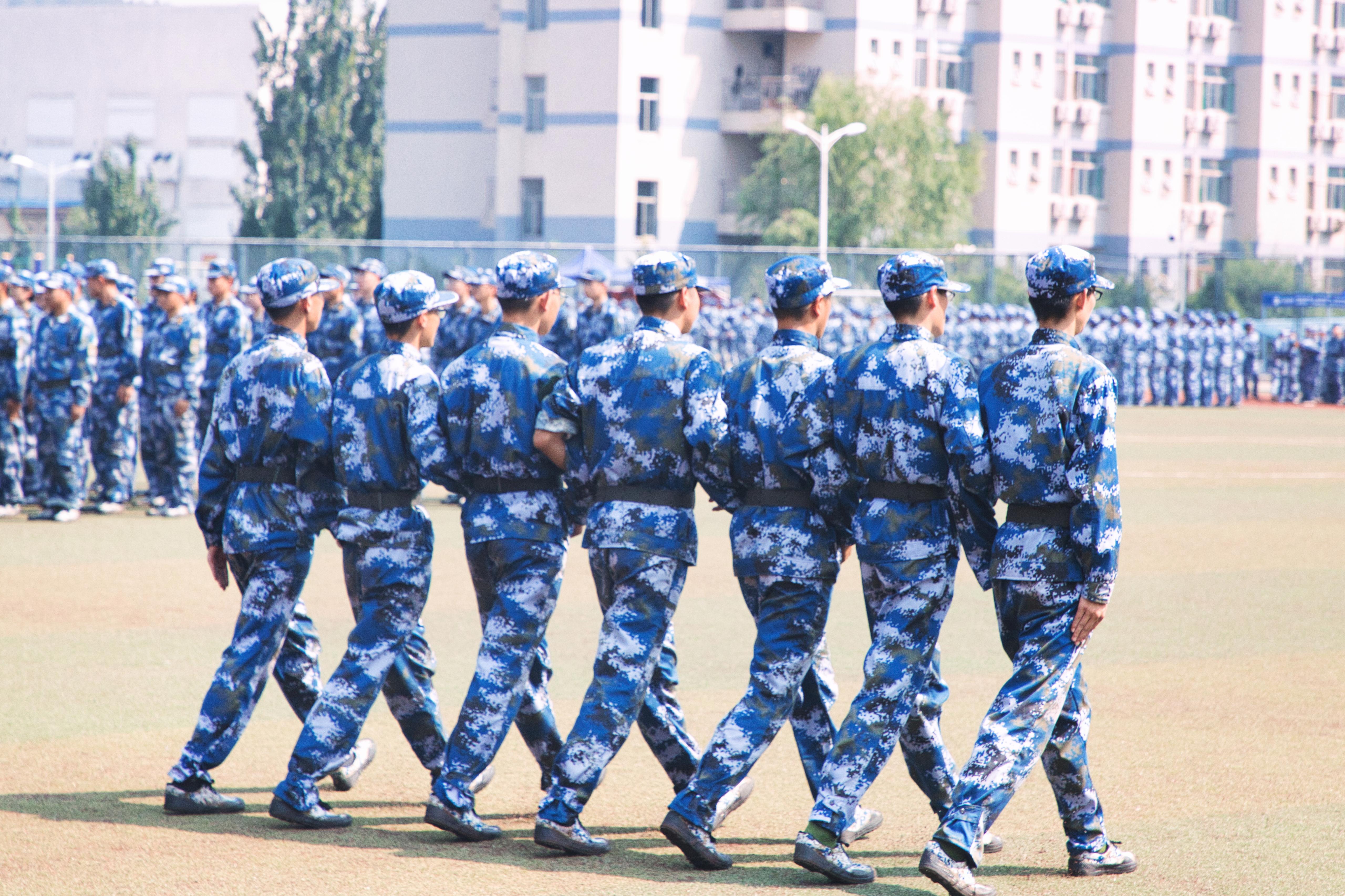 “军训是大学生入学必将经历的过程,除了学术上的思考和积累,坚定的心智和耐力也是一位合格的大学生所必须拥有的。”每一次坚持,每一次调整,都是同学们对自己的挑战,坚毅的脸庞,顽强的身姿,笔挺的军装,在红色的跑道上,组成了一幅和谐而完美的画面。欲与烈日试比强,太阳晒黑了我们的皮肤,却铸就了我们的坚强。