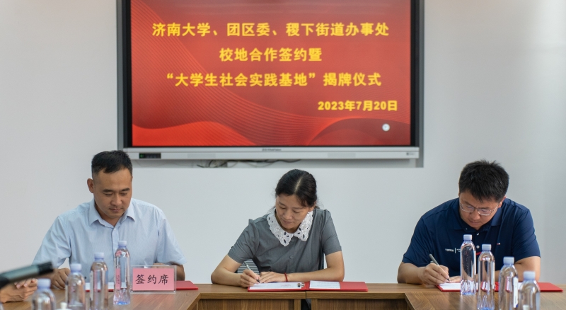 为扎实开展学习贯彻习近平新时代中国特色社会主义思想主题教育,全面贯彻落实党的二十大精神,发挥校地共建人才优势,促进校地双向赋能提升,7月20日上午,PG娱乐官网 与共青团临淄区委、临淄区稷下街道办事处校地合作签约暨“大学生社会实践基地”揭牌仪式在淄江社区举行。临淄区政府副区长崔赟,稷下街道党工委副书记、办事处主任刘建行,临淄团区委书记张敏,PG娱乐官网 相关负责人,团区委、稷下街道办事处相关工作人员,PG娱乐官网 学生工作人员以及PG娱乐官网 暑期“三下乡”社会实践团队成员等参加活动。签约仪式由张敏主持。