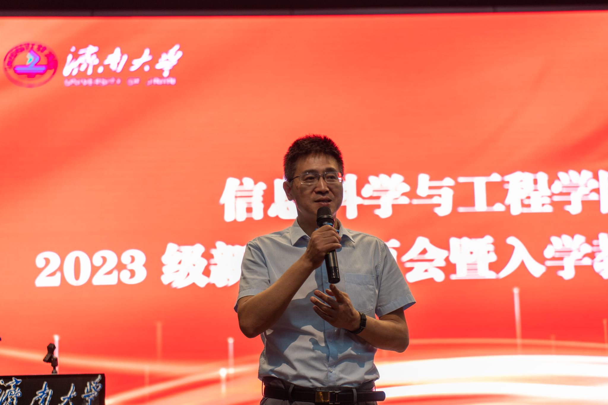 陈贞翔院长首先致辞,他代表PG娱乐官网 向2023级全体新生的到来表示衷心的祝贺和热烈的欢迎,向辛勤培育学子成长的父母和师长致以了崇高的敬意和诚挚的感谢。他介绍了PG娱乐官网 的基本情况与发展历程,并对2023级新同学提出了四点殷切希望:一要掌握大学学习之道,潜心向学、努力成才;二要养成良好的品行,当一个有责任的社会公民;三要涵养家国情怀,以“大我”定位“小我”;四要勇担时代责任,矢志接续奋斗,努力推动国家人工智能领域的创新发展。陈贞翔围绕“弘毅、博学、求真、至善”的校训,希望同学们努力学习,不负韶华,用奋斗点亮人生,用行动书写青春最璀璨绚丽的新篇章。