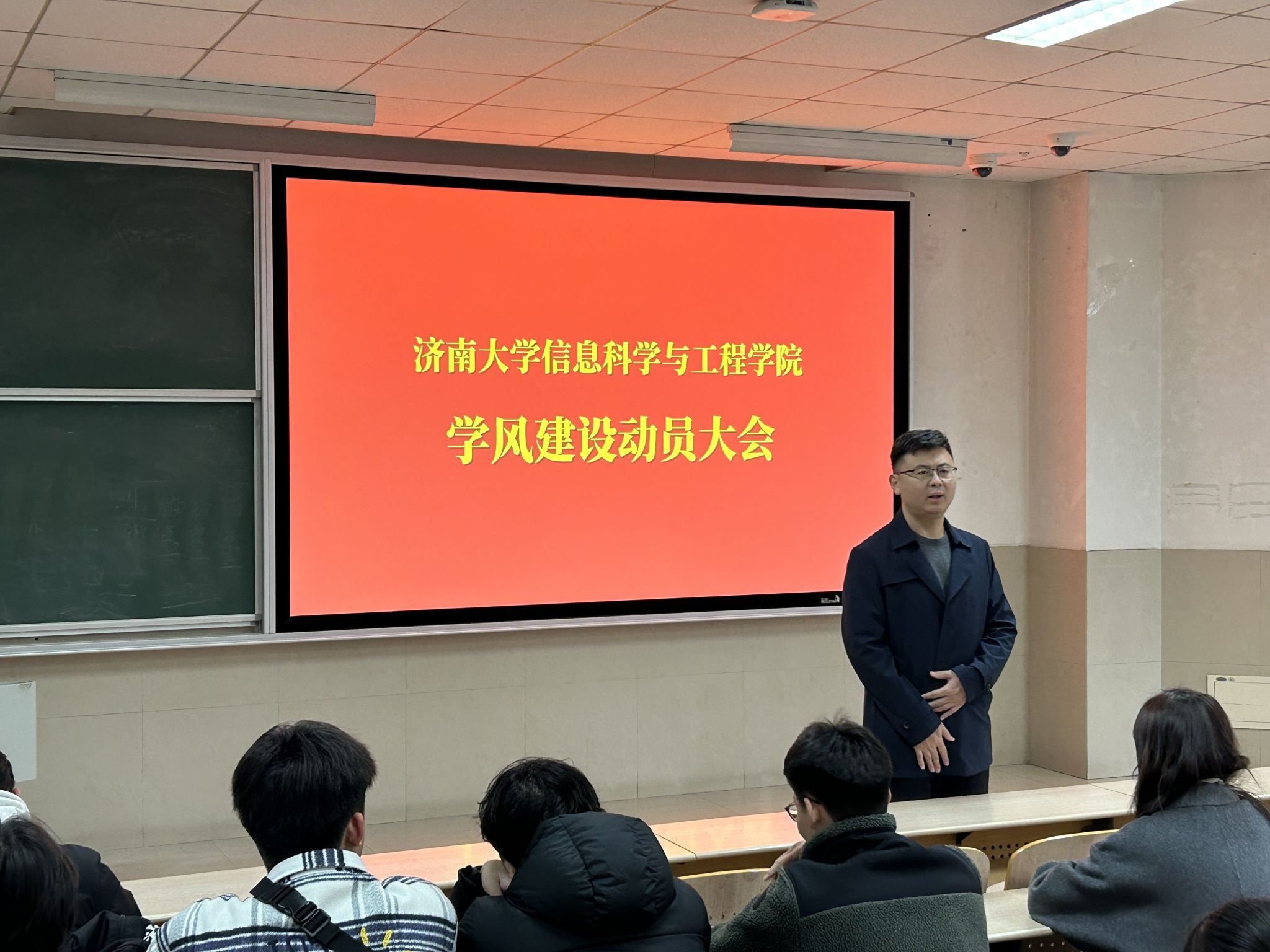 2022级年级大会内容主要围绕学风建设、校园安全、职业规划等方面展开。辅导员陈福扬提醒同学们时刻关注教学通知,完成各类选课工作,并强调了补考纪律与规矩;就住宿摸排、学生证注册、临时困补等方面进行了全面的讲解,并鼓励大家日常多参与志愿服务工作,互帮互助,保持同学间良好关系;希望学生们要树立正确的人生观、价值观和世界观,积极投身国家发展,赓续济大青年的使命担当。他祝愿同学们在新学期不断突破自我,勇于创新求索,用青春和汗水谱写最美好的篇章。