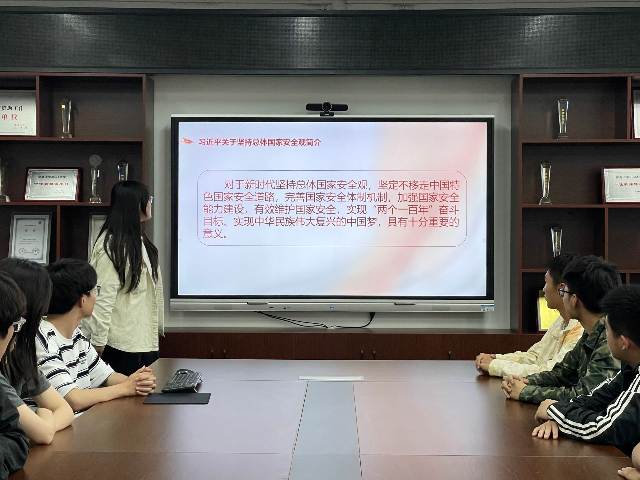 学生会大会进行“学讲话·悟思想”宣讲,以习近平新时代中国特色社会主义思想为指导,从总体国家安全观的内涵、我国国家安全体系建设的成就、国家安全教育对青年一代的教育意义三个方面进行宣讲。团委办公室负责人召开团干部大会,通过总体国家安全观的宣传教育视频,积极宣传普及国家安全知识,切实增强广大团员和青年的忧患意识和使命担当,勇于为维护国家主权、安全、发展利益挺膺担当,在强国建设、民族复兴伟业中勇当先锋队、突击队。