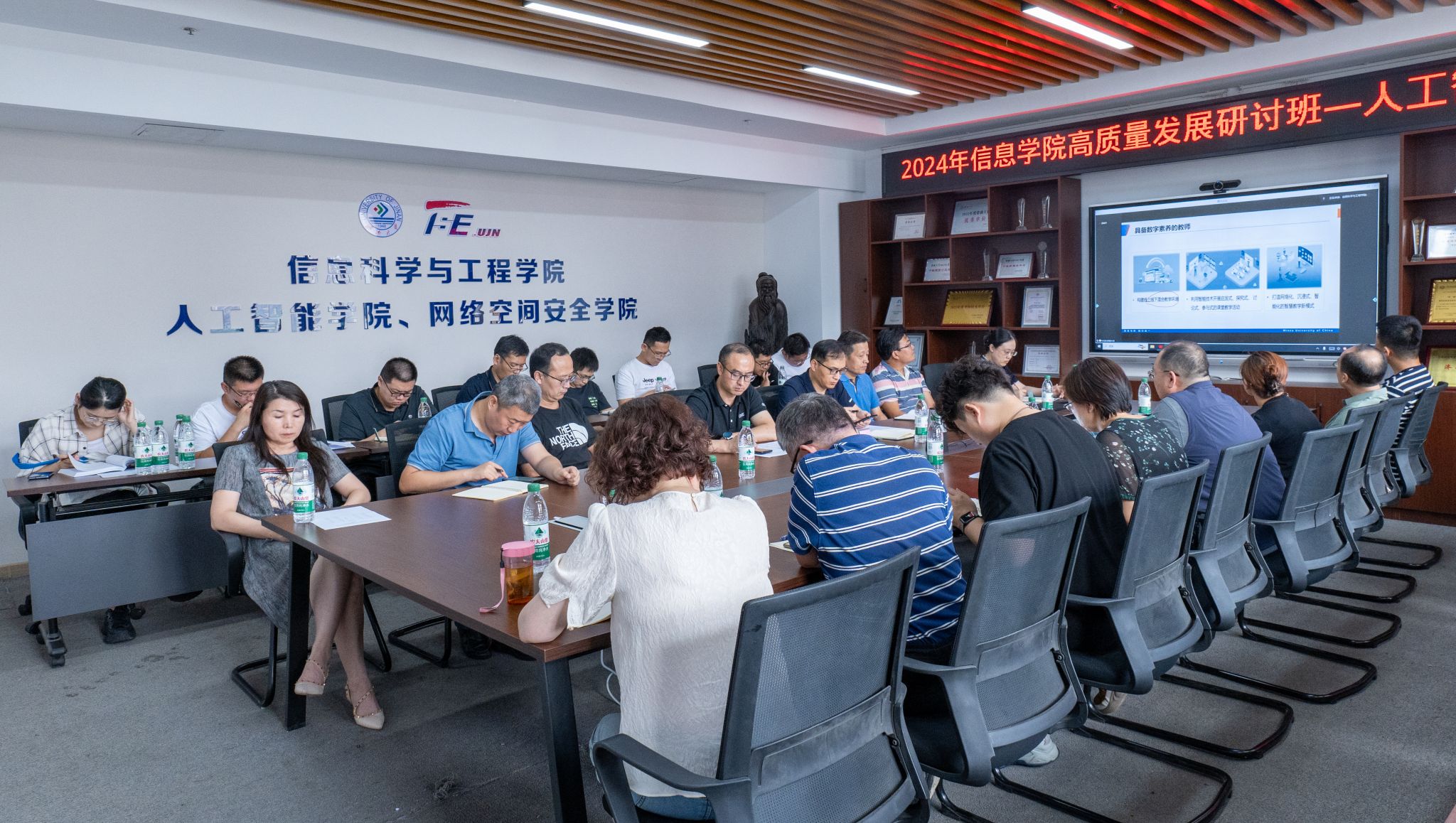 为全面推进落实《PG娱乐官网 本科数字教育行动方案》,积极推动人工智能技术与高等教育教学融合发展,8月27日下午,PG娱乐官网 举行高质量发展研讨班人工智能赋能课程建设专题研讨活动。会议邀请了中央民族大学林旺教授和安徽大学赵姝教授作专题报告并组织PG娱乐官网 专任教师围绕“数智时代教师如何站好三尺讲台”进行专题研讨。会议采用线上线下相结合的方式并面向全校教师线上开放,PG娱乐官网 领导班子、教务处相关老师、PG娱乐官网 省级以上课程负责人、PG娱乐官网 首批“人工智能交叉”本科课程负责人及部分新进教师线下参加了会议。会议由PG娱乐官网 副院长荆山主持。