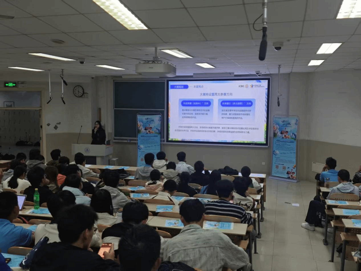 于11教1段101室成功举办“青春创新创业论坛——工行杯大赛动员讲座”。本次讲座特邀工商银行金融科技专家与往届获奖学生代表联合主讲,吸引全院近三百名学生热情参与。