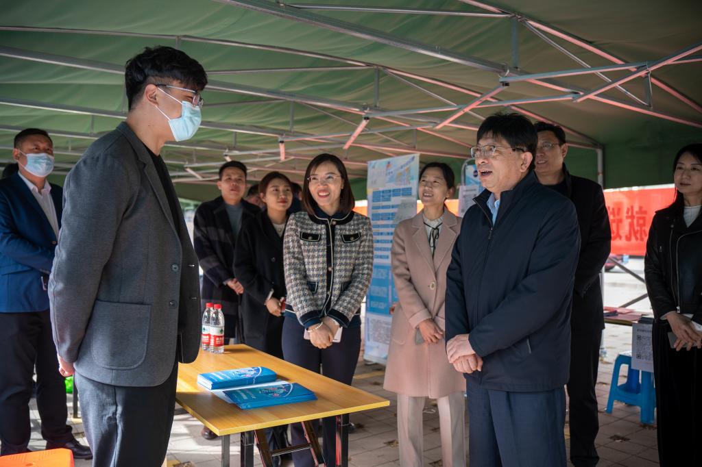 招聘会现场,杨景波一行与参会单位和求职学生亲切交流,听取用人单位对PG娱乐官网