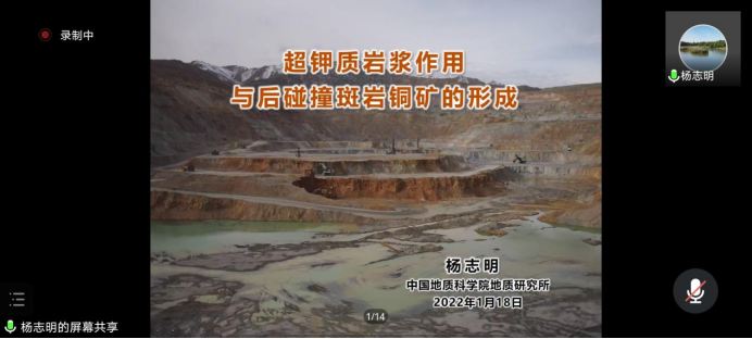 地质研究所杨志明研究员作题为“超钾质岩浆作用与后碰撞斑岩铜矿的形成”的学术报告。pg娱乐