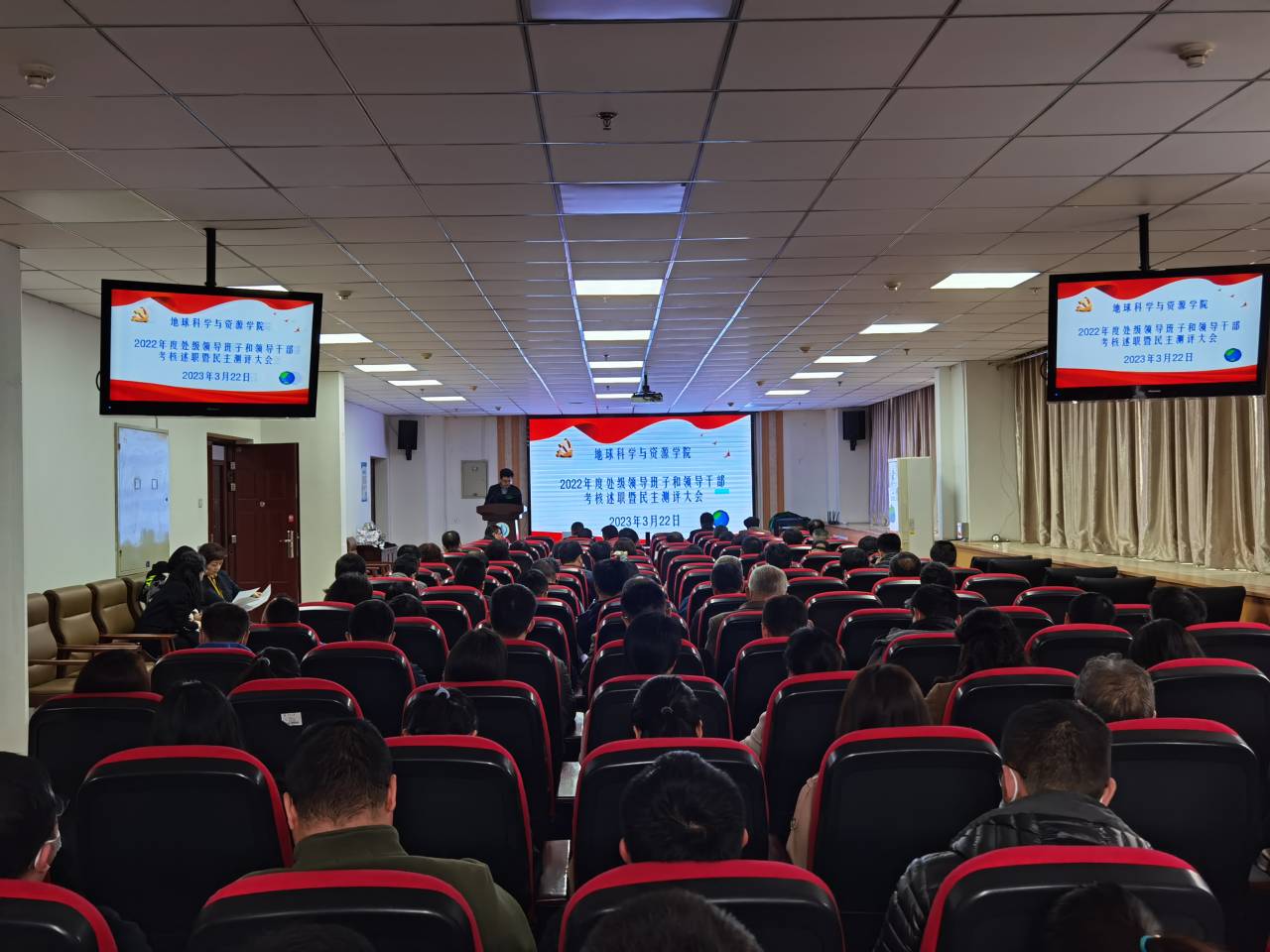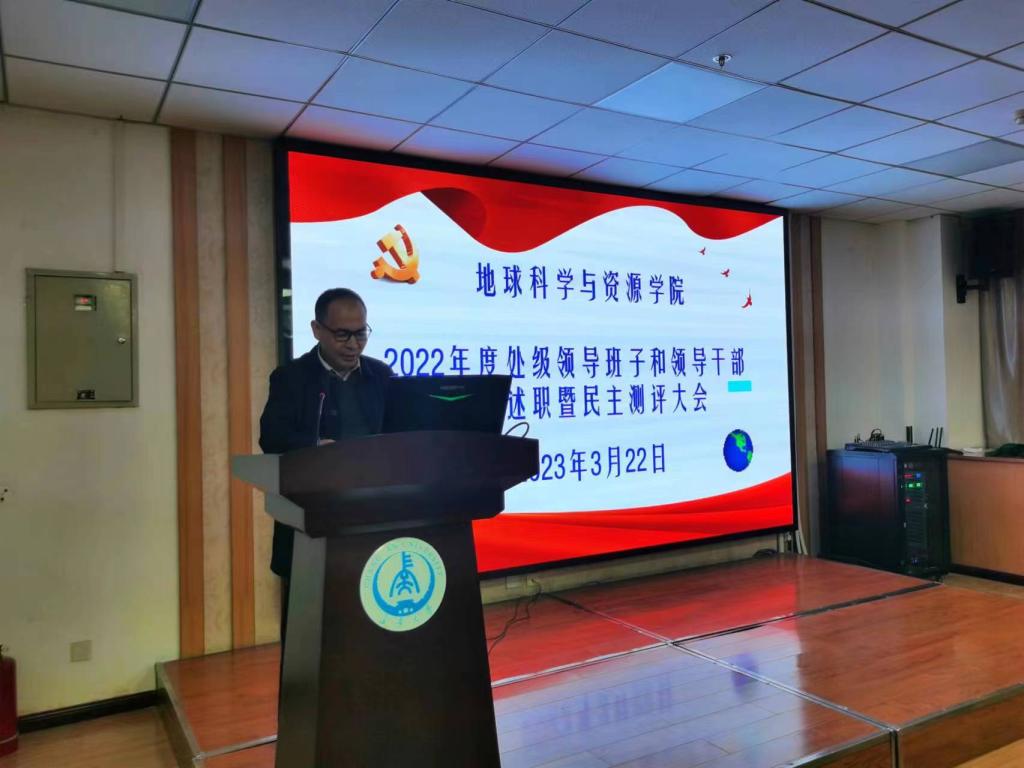 在雁塔校区地学大厦三楼学术报告厅召开了2022年度处级领导班子和领导干部考核述职暨民主测评大会。pg娱乐