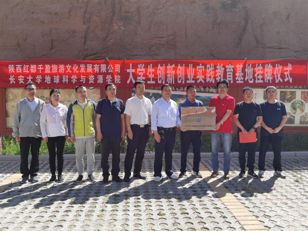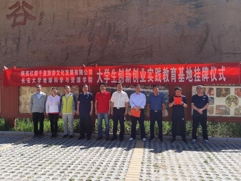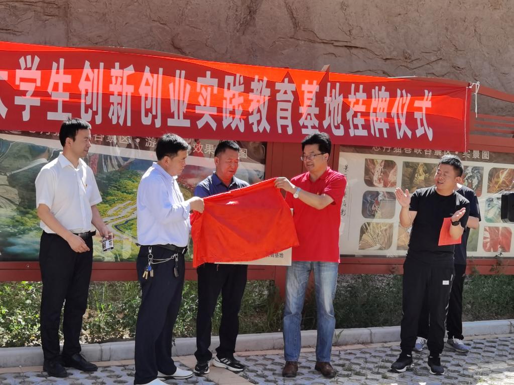 大学生创新创业实践教育基地挂牌仪式。志丹县文化和旅游局党委书记、局长王蔚恩,旅游服务中心主任南楠,陕西红都千盈旅游文化发展有限公司董事长、志丹猫巷峡谷景区总经理任志刚,pg娱乐