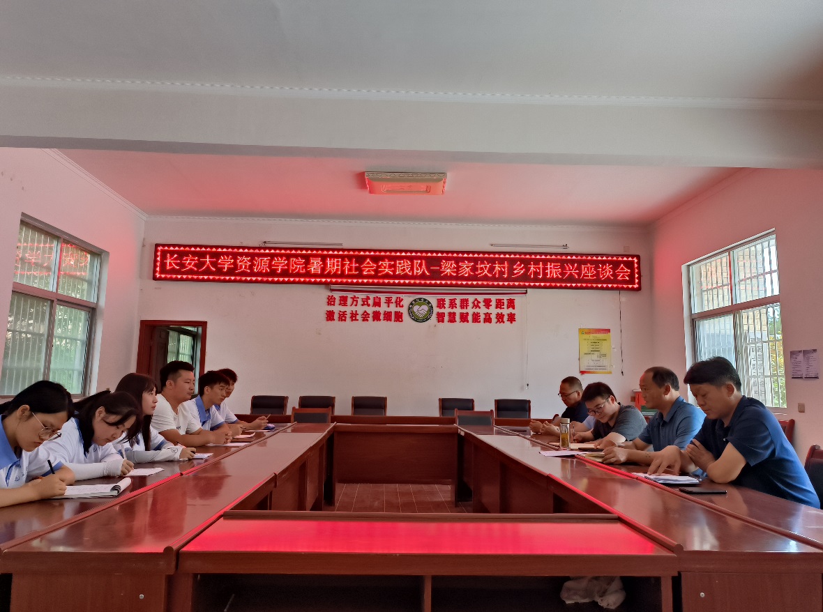 暑期实践队—梁家坟村乡村振兴座谈会”,听取梁家坟村就易地搬迁、危房改造、产业发展、乡村环境改善、扶农就业创业等村情情况介绍,了解梁家坟村在巩固脱贫攻坚与有效衔接乡村振兴方面存在的困难和帮扶所需等。