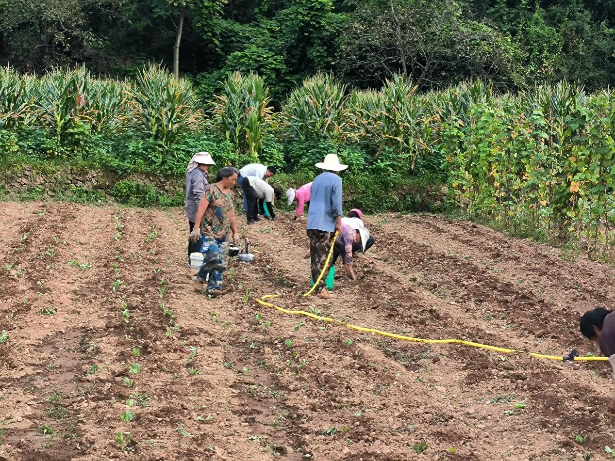 图为梁家坟村村民栽种紫甘蓝