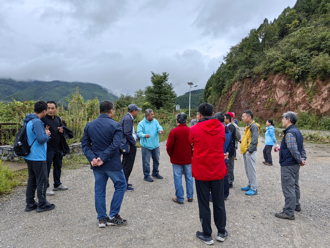 在参观完实习基地后,由李佐臣副院长带领中国地质大学的老师们继续赴野外进行地质考察,选择踏勘构造现象发育的陈村水库地质路线,并在野外与pg娱乐