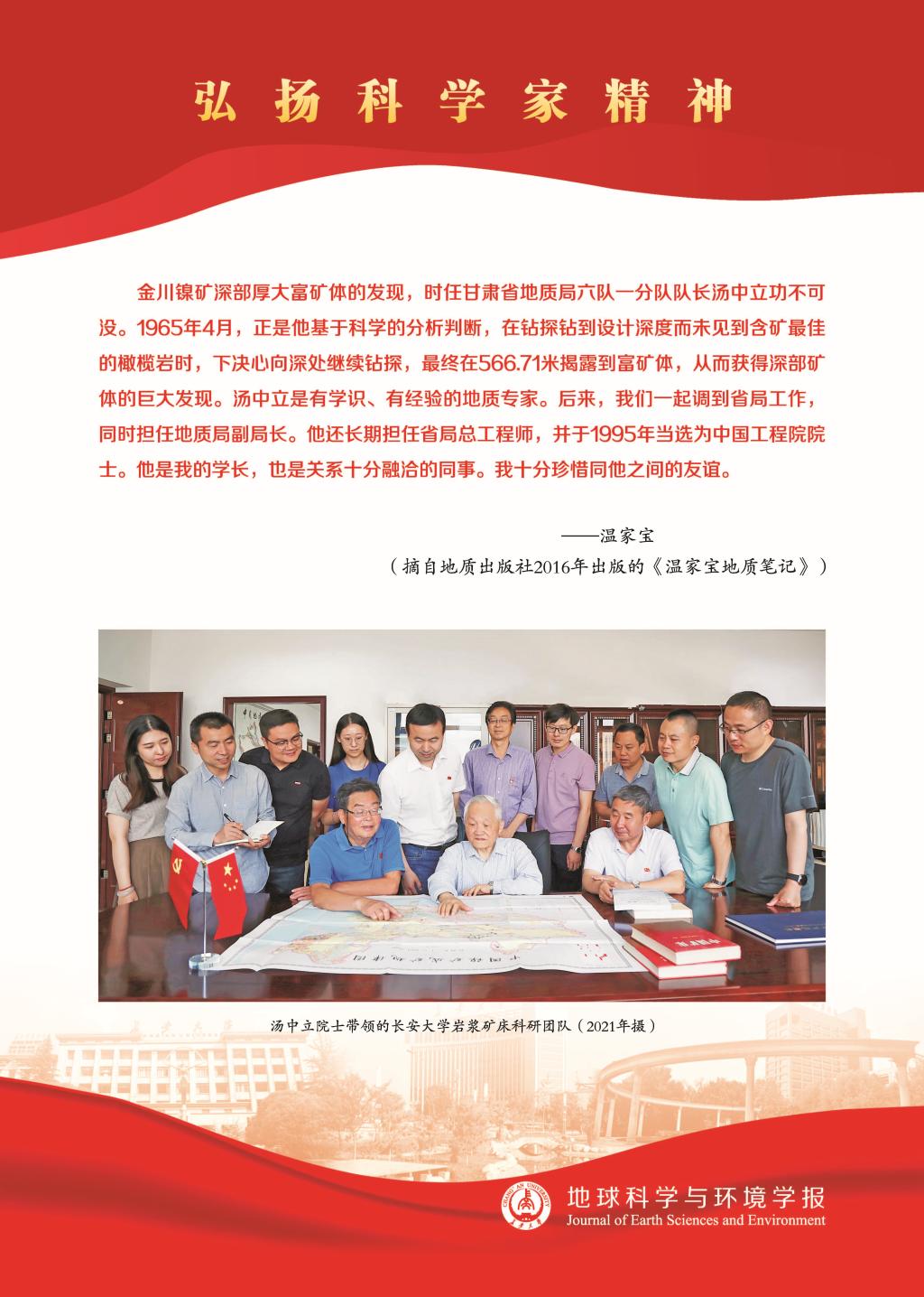 《地球科学与环境学报》2023年第5期策划出版了“庆贺汤中立院士从事地质工作七十周年专辑”。