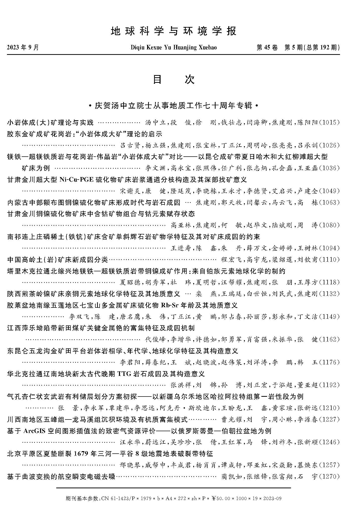 建校七十周年专辑”(上)(中)(下),2022年成功出版“庆祝西安地质调查中心组建六十周年专辑”(上)(下)、“纪念刘国昌先生诞辰110周年专辑”,2023年成功出版“《地球科学与环境学报》更名二十周年纪念专辑”(上)(下)之后,在精神传承型专刊方面的又一力作。
