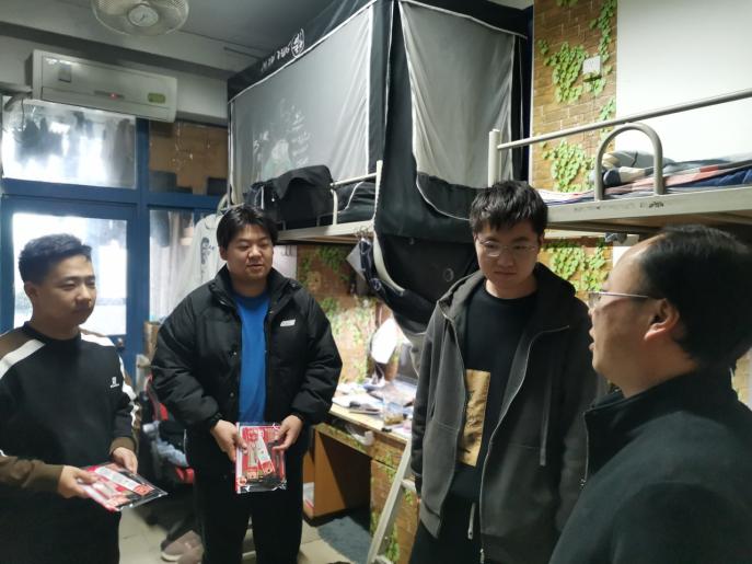 党委副书记武永江和本科生第一党支部书记巩昌盛为大家发放了学习文具等用品,希望大家努力学习,争取在考研中考出理想成绩。