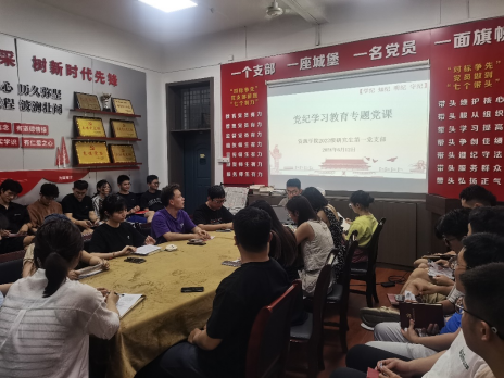 会议开始,支部全体党员集体观看了《党章电视辅导教材》第五集《党的纪律》视频,支部书记黄颖兴围绕《中国共产党纪律处分条例》讲授专题党课,并对支部后续的学习教育进行安排部署。
