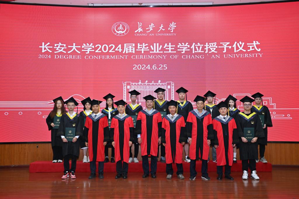 随后,学位授予仪式正式开始,黄喜锋书记宣读了毕业生学位授予名单。温汉捷教授、钱壮志教授、杨兴科教授、裴先治教授、李佐臣教授、程宏飞教授为毕业生们逐一拨正流苏、颁授学位证书并合影留念。
