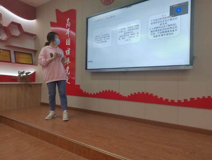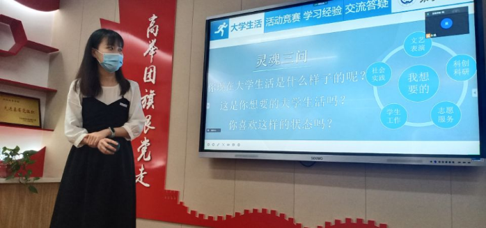 的博雅之星获得者武文婧同学进行宣讲。武文婧刚开始就点出了学习的重要性,希望同学们一定要重视自己的学习。接下来,她通过分享自己的学习生活、创新创业竞赛及综合实践等方面的经历,鼓励大家永远保持学习热情,不断丰富自己的简历,也多去看看外面的世界,让自己的大学生活充实。