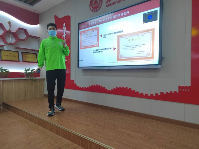 竞技之星获得者、国家一级运动员朱子轩在经验分享中,他表示自己从小热爱体育,足球是他的长项,他认为一个热爱体育活动的人不仅仅是爱参加的人,也应该是能组织的人。他建议同学们要做自己最擅长的事,希望同学们也能为自己热爱的事业努力奋斗。