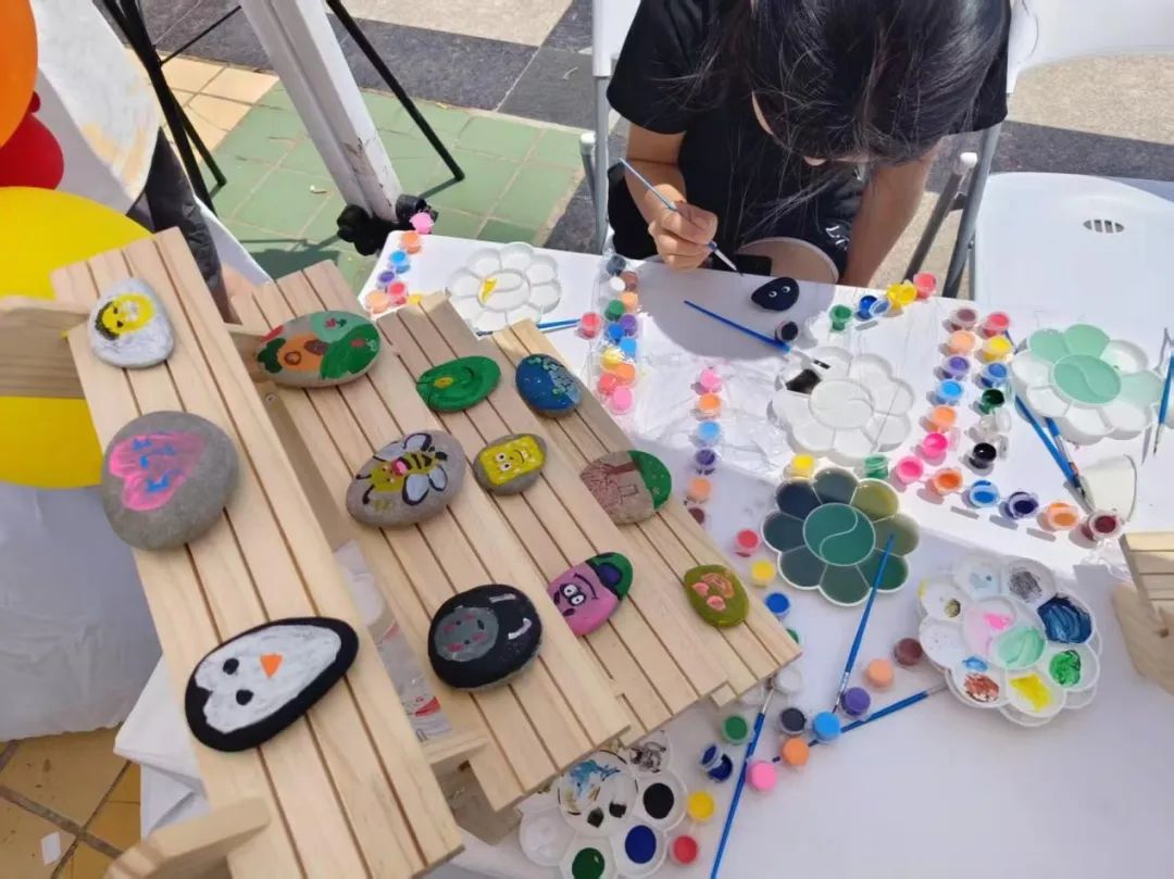 活动开场,工作人员有序为同学们发放岩石、颜料、画笔等创作工具,还贴心进行绘画技巧与色彩搭配讲解,为创作筑牢基础。活动吸引了各pg娱乐