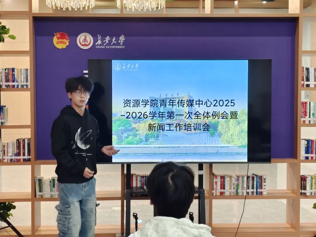 青年传媒中心于北校区鸿渐园青年会客厅开展2025-2026学年新闻工作培训会暨第一次全体例会。会议以“规范业务流程、明确职责分工、凝聚团队合力”为目标,分阶段系统推进工作部署。青媒指导教师张凤、全体青媒成员及各班宣委参会,会议由运营部部长武晓东主持。
