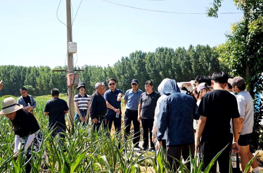 随后,师生党员前往校区的玉米、红薯试验田参观学习。相关田块负责人详细介绍了作物的生长特性、田间管理要点及土地资源利用现状。通过实地考察与听取讲解,师生党员将思政课堂所学知识与农业生产实践相结合,增强了对国情、农情的理解,进一步明确了作为大学生党员在国家发展和社会进步中的责任担当。