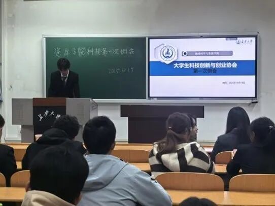 大学生科技创新与创业协会内部交流协作、欢迎新成员加入、明确各部门工作方向,科协于10月19日在WM1213召开2025—2026学年第一次全体例会。本次例会由科协主席杨瑞主持,科协全体成员参加。