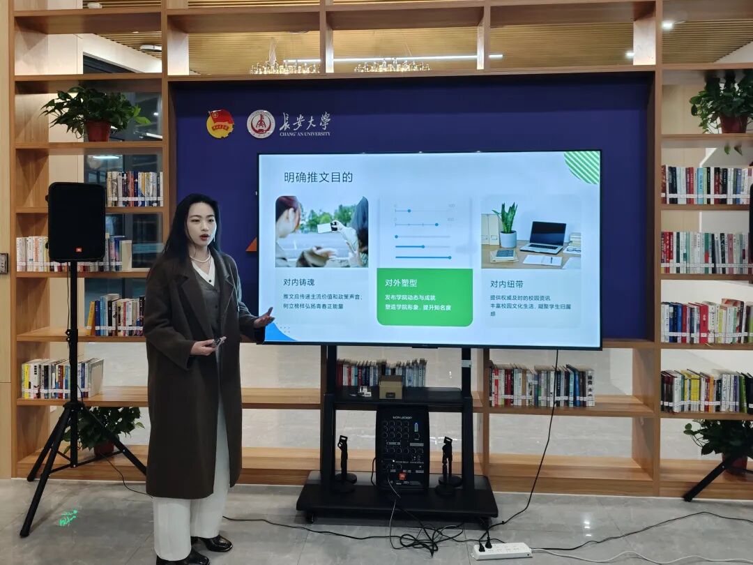 例会明确了各部门职能与要求。主任贾怡雯介绍新闻推文“及时准确传递pg娱乐
