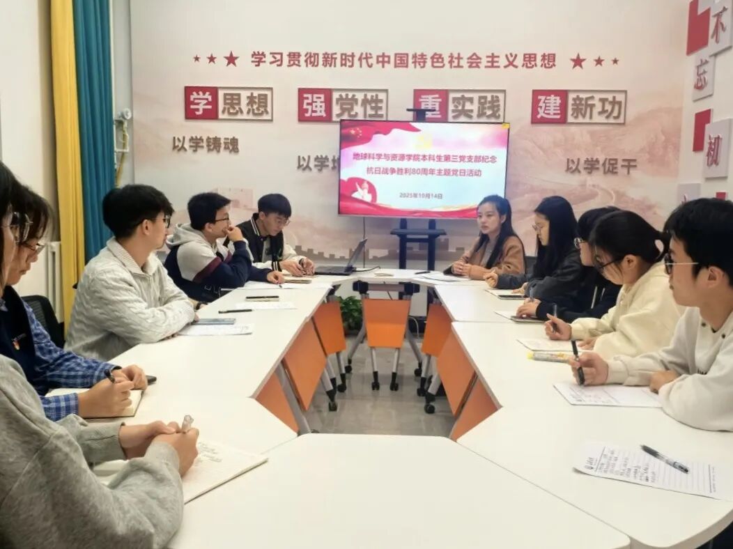 通过学习,同志们结合专业特色,踊跃发言,探讨如何将“天下兴亡,匹夫有责”的爱国情怀与“不畏强暴、血战到底”的英雄气概,融入保障国家资源能源安全、服务高质量发展的具体实践中。大家一致认为,作为资源学子,更应赓续红色血脉,锤炼过硬本领,把抗战精神转化为科技报国的实际行动,为实现民族复兴伟业贡献青春力量。